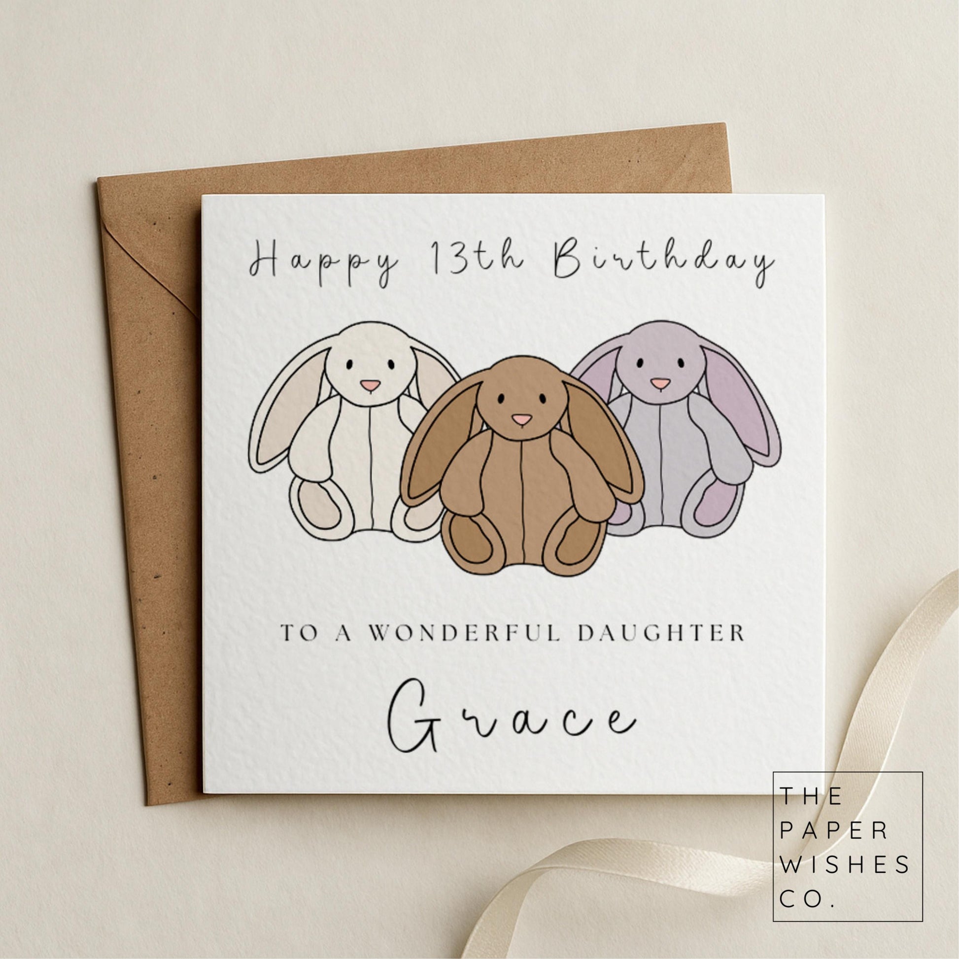 This adorable personalised jelly bunny birthday card is the perfect way to celebrate a special big day. Featuring three cuddly bunnies in your choice of colours (13 options available!), this card can be fully personalised with the recipient's name and any age or wording of your choice. Thoughtful, cute, and completely unique.